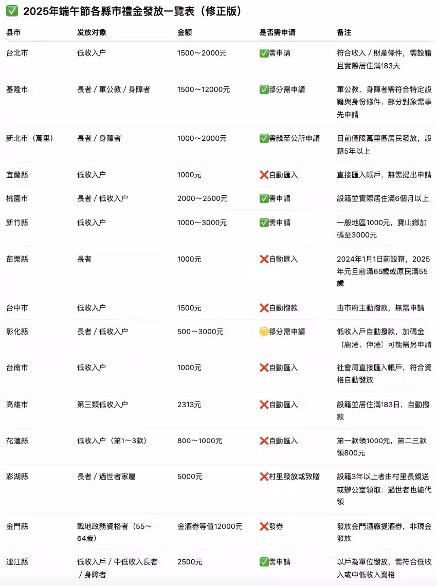 對象:設籍滿3年以上之65歲長者,或端午節前30日後過世者