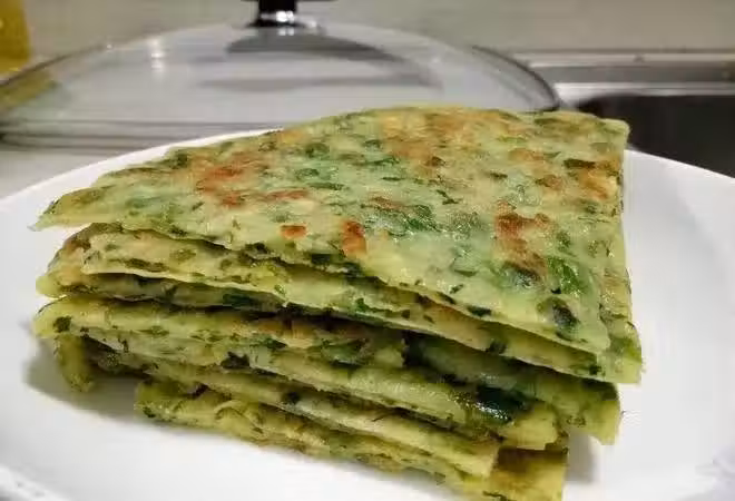 3.平底鍋熱少許油,油熱後,倒入麵糊,中小火煎,一面變黃後再翻面,兩面面熟透就可以了。