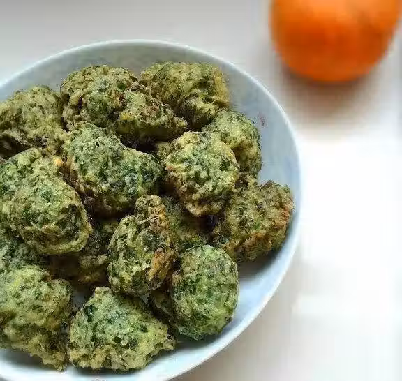 3.鍋中熱油,有6成熱左右,用勺子舀成丸子,下入鍋中。