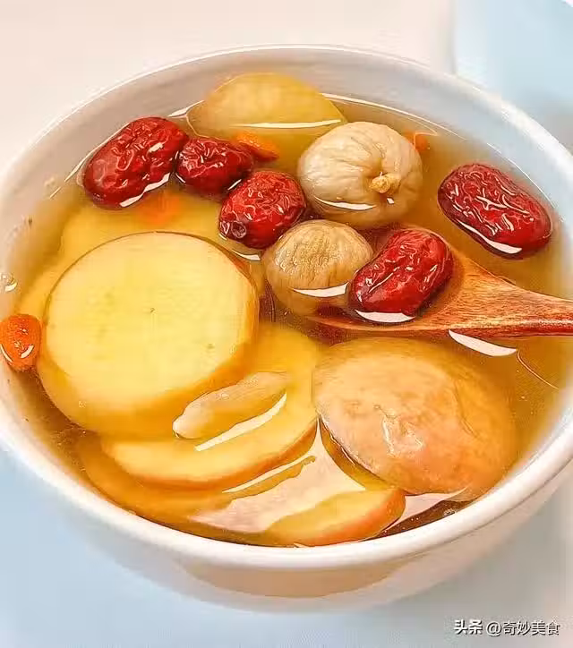 這杯看似普通的甜湯,其實是氣血雙補的寶藏。黃芪補氣固表,麥冬養陰潤肺,兩者搭配為身體注入滿滿能量;紅棗養血安神,枸杞滋補肝腎,讓臉色愈發紅潤。最驚喜的是蘋果和無花果的加入,蘋果富含抗氧化成分,幫肌膚抵禦歲月痕跡,無花果對乳腺健康也十分友好。