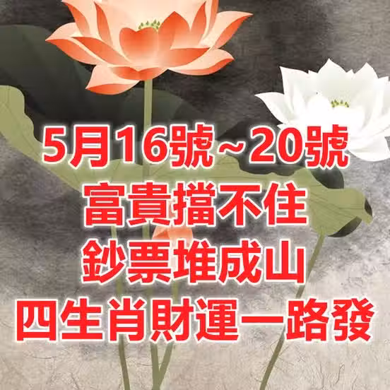 5月16號~20號富貴擋不住,鈔票堆成山,四生肖財運一路發!