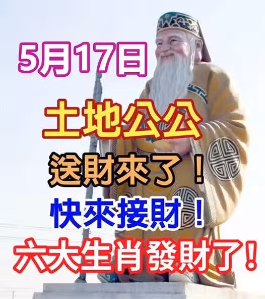 今天5月17日,土地公大開金庫大派財!這幾個生肖快來接財!