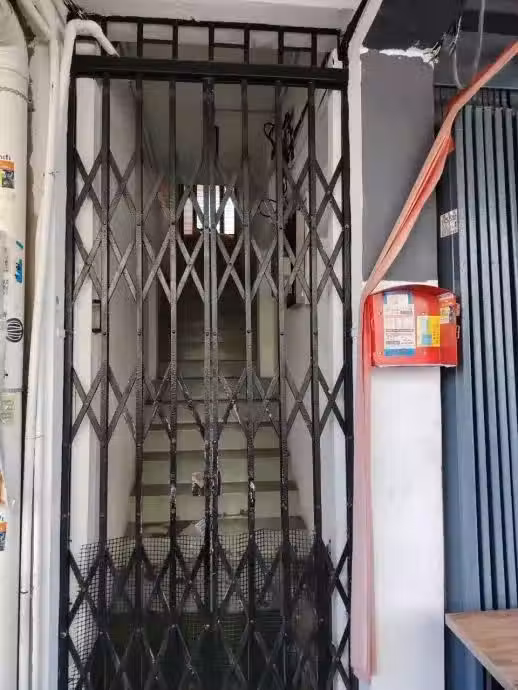 民宿樓下的鐵門深鎖。(吳雪兒 攝)