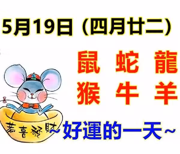 5月19日生肖運勢_鼠、蛇、龍大吉