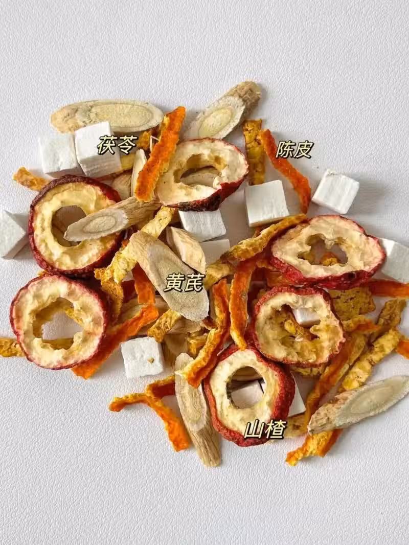 陳皮5g+山楂 5g+茯苓7g+黃芪 5g