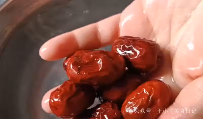 紅棗處理:創新"四維清洗法"——清水初洗去浮塵,麵粉水吸附褶皺灰垢(10g麵粉/500ml水),小蘇打水分解農殘(2g小蘇打/500ml水),最後流水沖洗至碗底無沉澱。去核時建議使用不鏽鋼去核器,保留完整果肉。