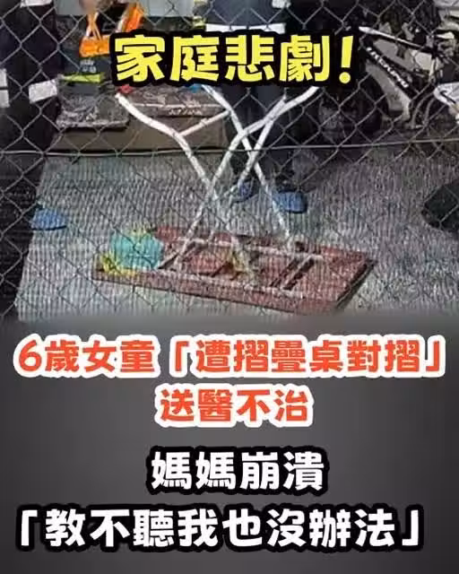 家庭悲劇!6歲女童「遭摺疊桌對摺」送醫不治 媽媽崩潰「教不聽我也沒辦法」.