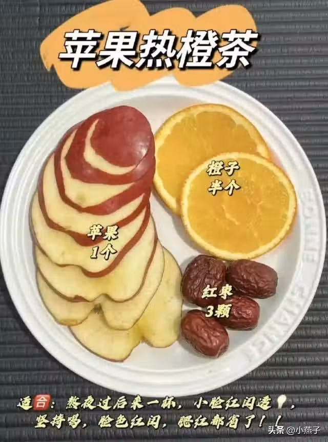 做法:橙子切片,蘋果切塊,加水煮10分鐘。