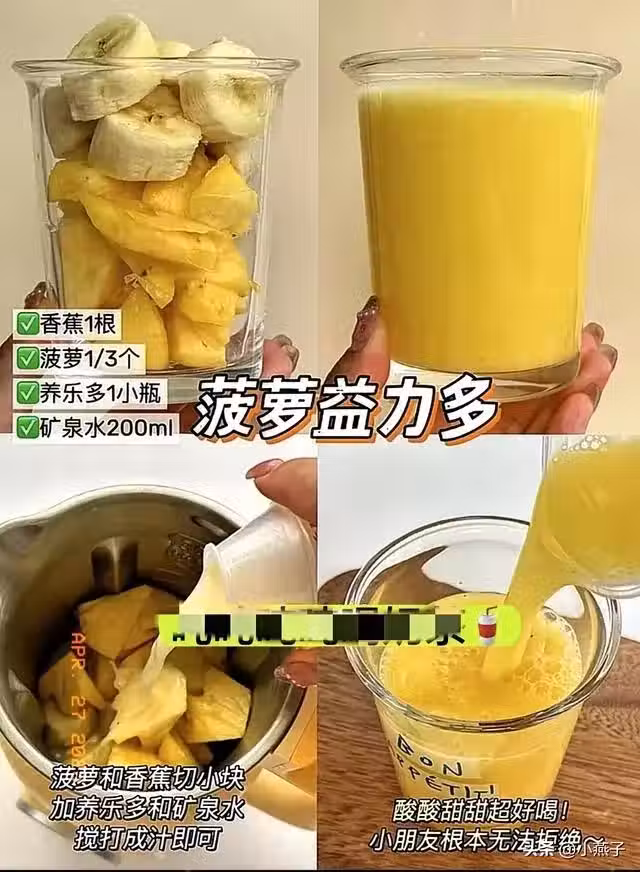 ✅配方:菠蘿1/3+香蕉1根+養樂多1瓶+水200ml