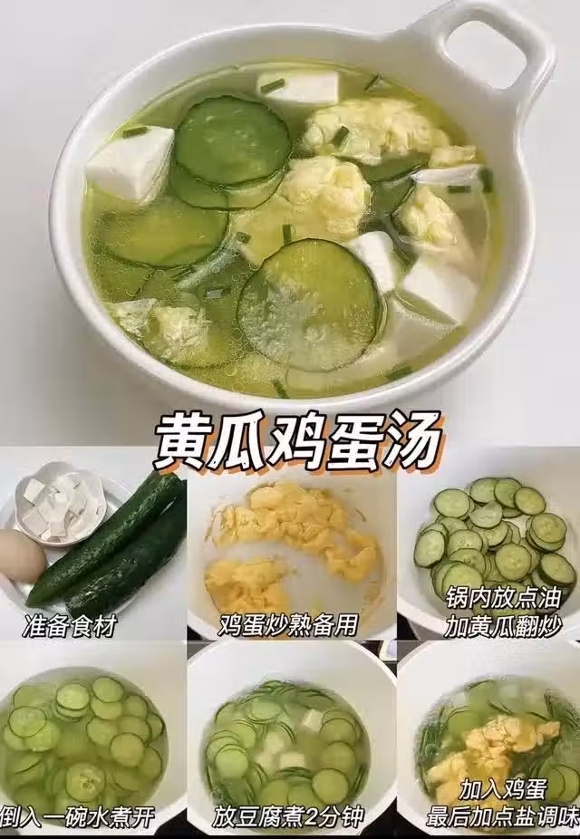 黃瓜雞蛋湯:妥妥的「負熱量+高蛋白」擔當!用嫩滑的內酯豆腐代替老豆腐,口感直接升級,每一口都是享受!