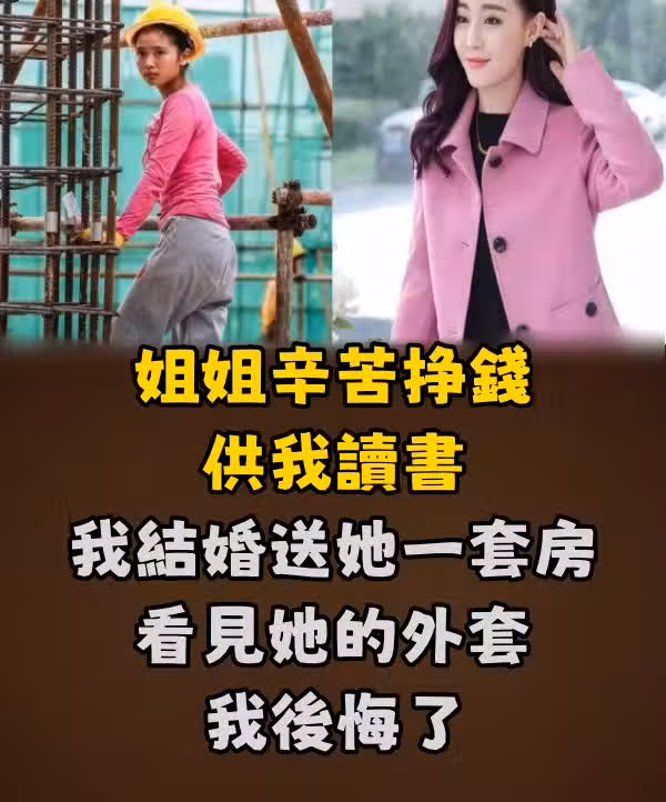 姐姐辛苦掙錢供我讀書,我結婚送她一套房,看見她的外套我後悔了