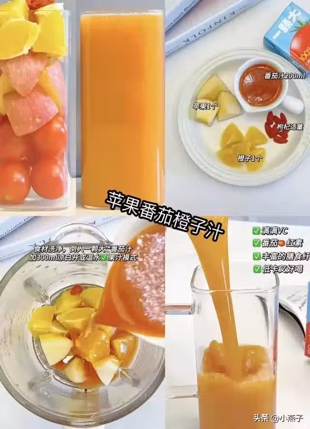 食材:NFC番茄汁200ml、蘋果1個、橙子1個|枸杞少許。