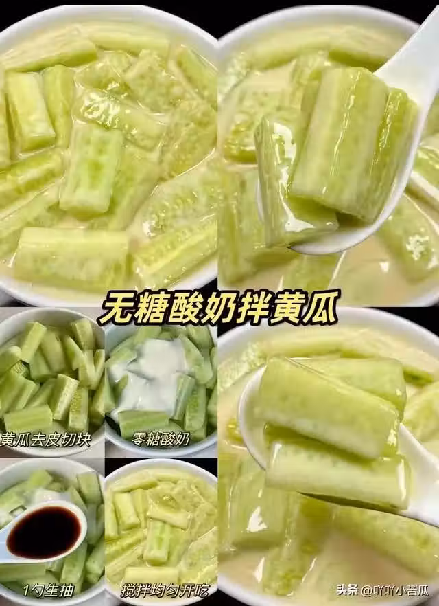 1. 黃瓜切條,淋上無糖酸奶,加1勺生抽攪勻!