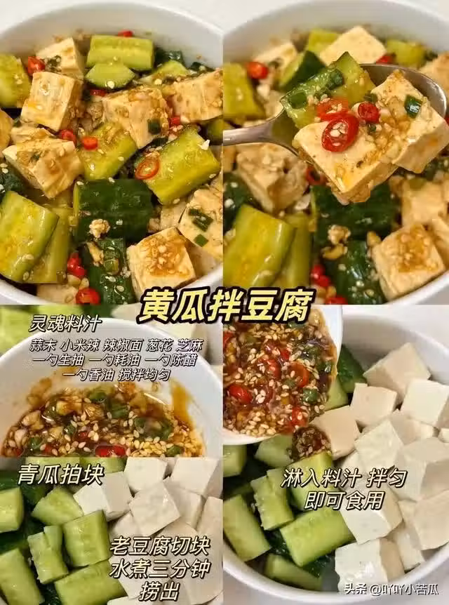 食材:黃瓜1根、老豆腐200g!