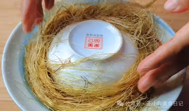 準備一個小碗,將其倒扣在裝有枸杞的盆中。然後,把清洗乾淨的玉米須沿著小碗的邊邊塞滿。這樣做的目的是在蒸製過程中,讓玉米須和枸杞的營養成分更好地融合,同時也能讓蒸出的湯汁更加濃郁。