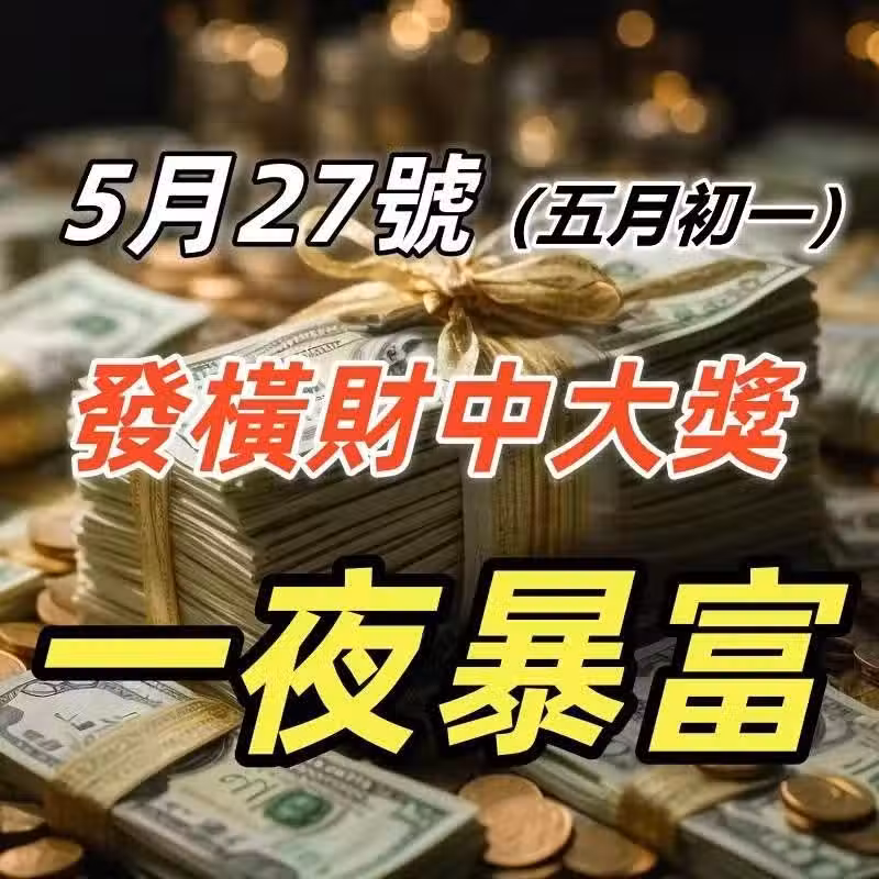 5月27號(農暦五月初一)發橫財中大獎,一夜暴富的生肖!