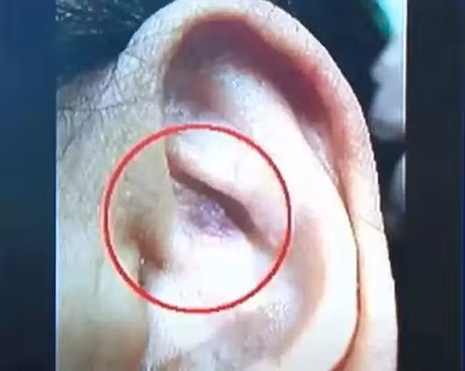 在了解病情後,醫師立即檢查了病人的耳朵,發現耳朵的大腸反射區已經呈現燒焦黑色。