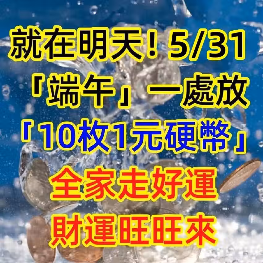 🎉 就在後天!5月31號端午節,一處放「10枚1元硬幣」——全家走好運,財運旺旺來!