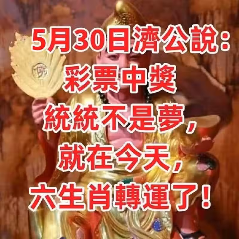 5月30日濟公說:彩票中獎統統不是夢,就在今天六生肖轉運了!