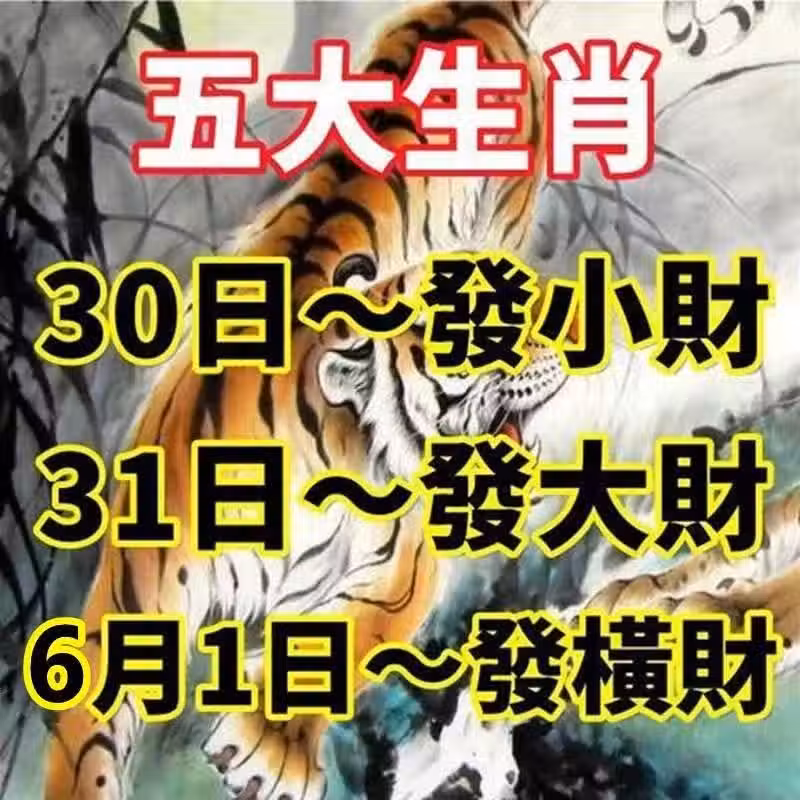 五大生肖:5月30日發小財,31日發大財,6月1日發橫財.