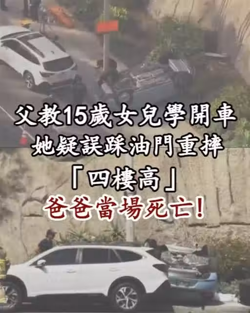 父教15歲女兒學開車!她疑誤踩油門重摔「四樓高」爸爸當場死亡
