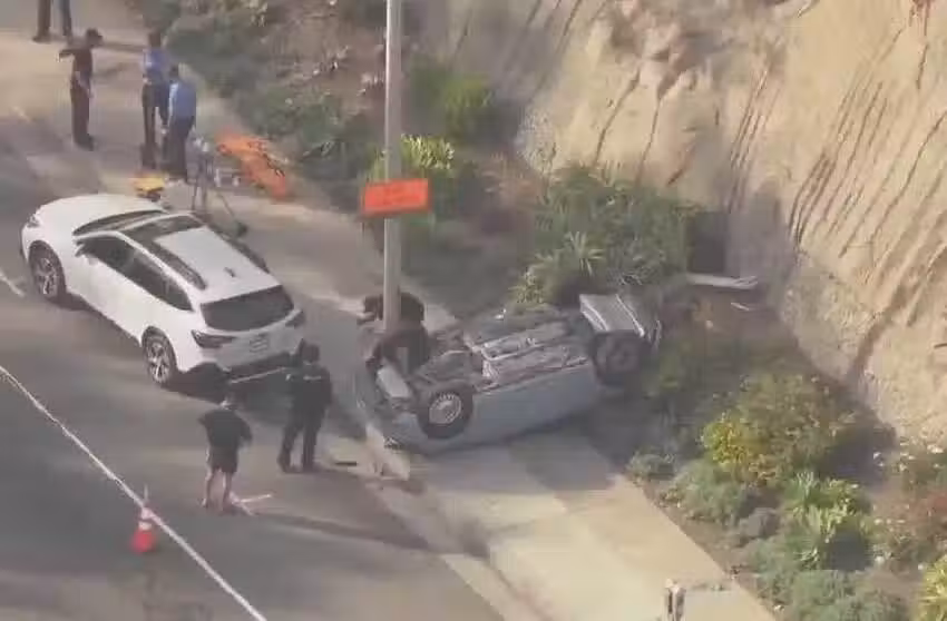 ▲美國加州一起發生了令人心碎的交通事故,一名64歲的父親在指導15歲的女兒學習開車時,車輛失控衝破約四層樓高的停車場,翻落至下方公路,導致坐在副駕駛父親的當場身亡。 (圖/翻攝自X)