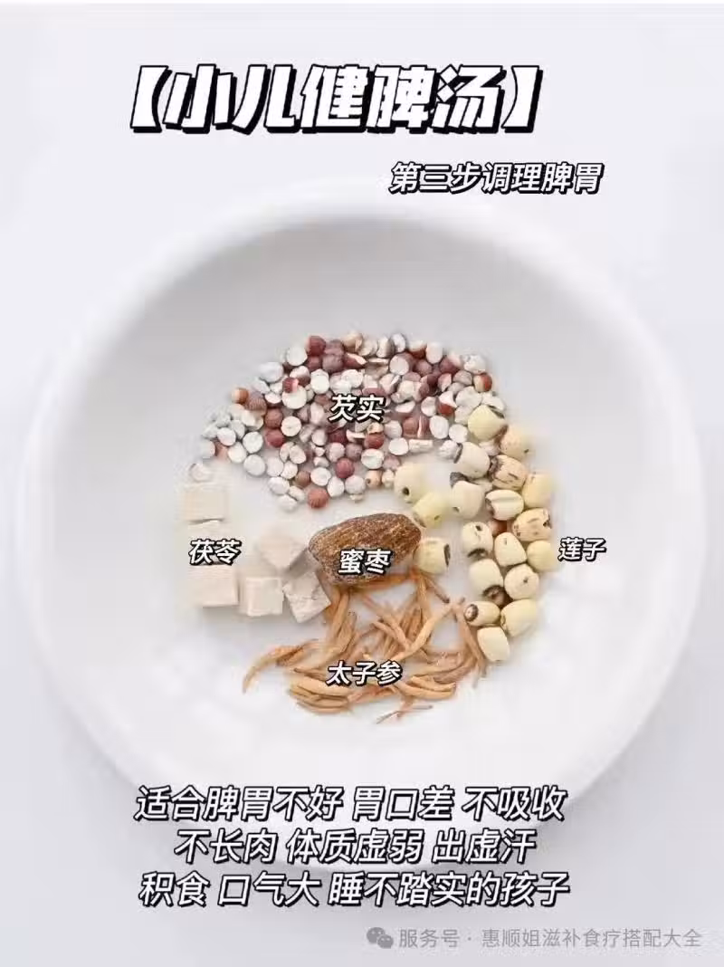 🌟食材:太子參10克、白蓮子10克、芡實10克、茯苓10克、蜜棗2顆