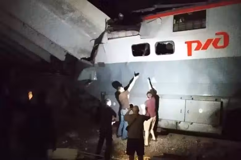 這起事故造成列車嚴重出軌變形,現場一片混亂。莫斯科鐵路局指出,這是一起「非法干預」事件。從現場畫面可見,混凝土殘骸四處散落,列車車廂遭到嚴重擠壓變形,場面相當駭人。