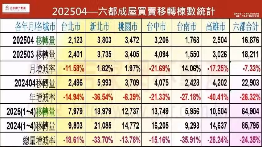 房市趨勢專家李同榮直言,根據官方統計,4月成屋交易量年減26%,1~4月也削減24%;另外,4月五大銀行新承做房貸金額為627.3億元,和3月相比,劇減192.79億元,月減高達23.22%,房貸利率則沖至逾16年新高。