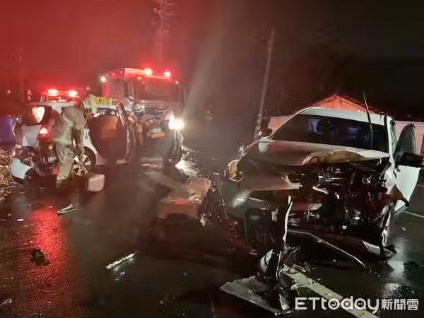 根據《ETtoday新聞雲》報導,台南市後壁區深夜發生一起嚴重車禍事故,兩輛自小客車在昭安宮附近發生劇烈碰撞,導致車上5名乘客中有3人當場受困車內,且現場救護人員檢查時已無生命跡象。