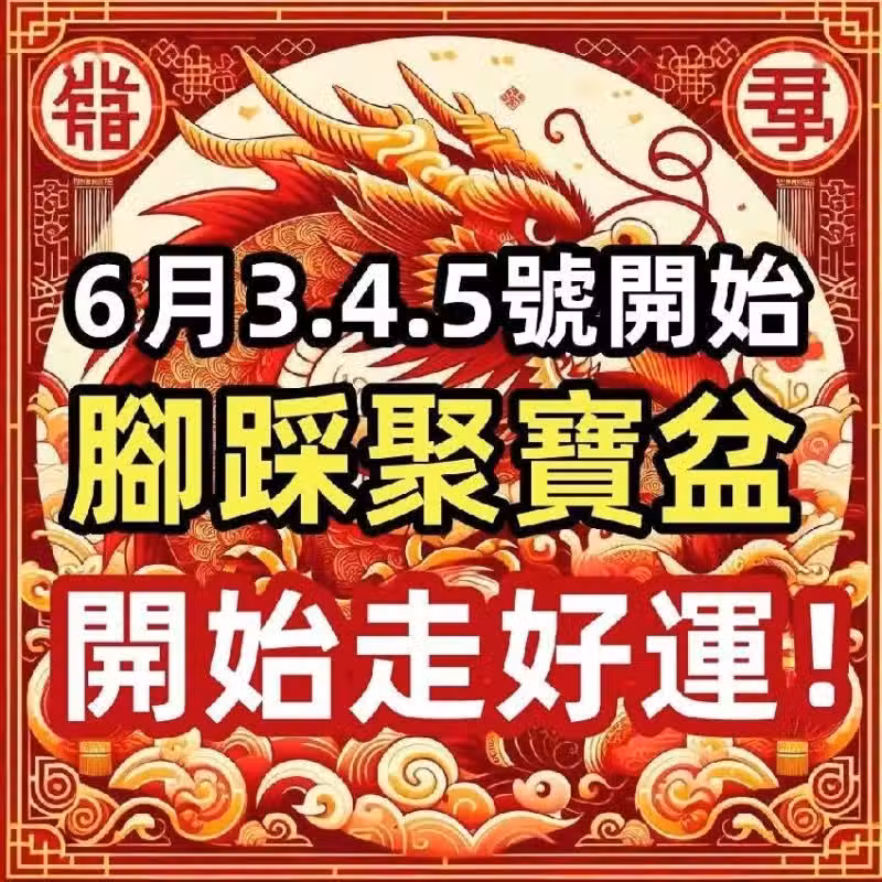 6月3.4.5號開始腳踩聚寶盆,六生肖開始走好運