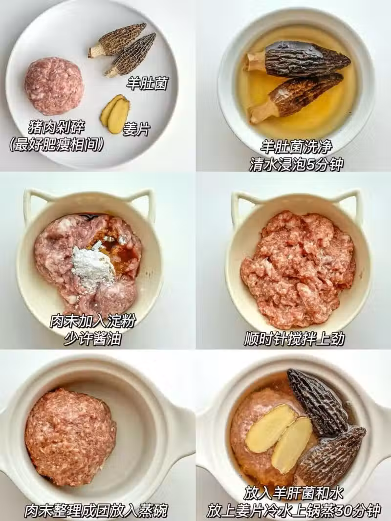 肥瘦豬肉(3肥7瘦)、羊肚菌2朵、姜2片