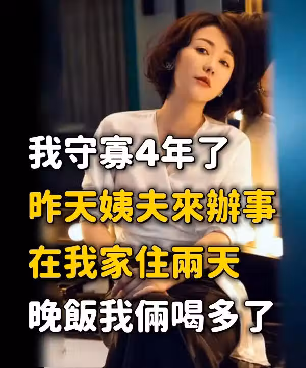 我守寡4年了 昨天姨夫來辦事 在我家住兩天 晚飯我倆喝多了