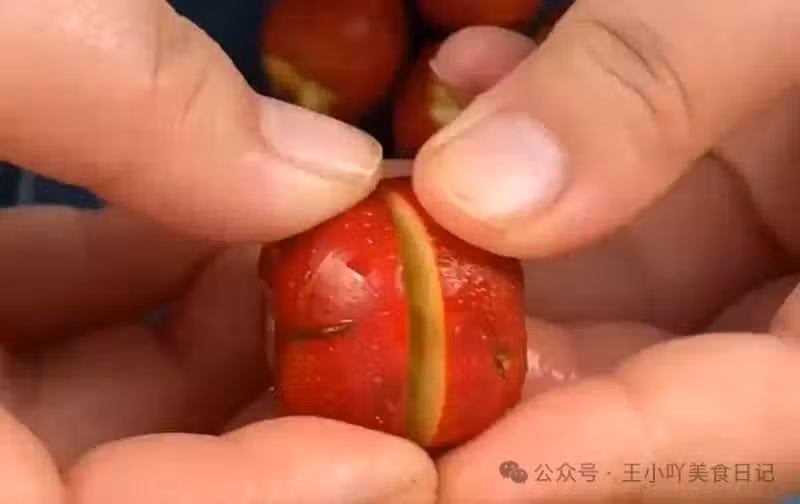 處理山楂:洗好的山楂放在案板上,先把山楂的根去掉。接著,用小刀在山楂尾部慢慢划動,小心地將山楂尾部去掉,操作時一定要注意安全,避免劃傷手指。之後,在山楂中間的位置划上一圈,用手輕輕一掰,就能把山楂一分為二。最後,用手把山楂裡面的籽掰掉。