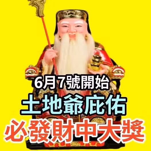 6月7號開始運勢上上籤,土地爺庇佑,五生肖必發財中大獎