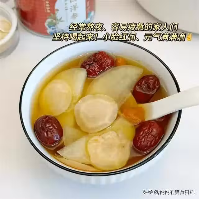 食材搭配有蘋果1個,西洋參5克,黃芪5克,麥冬5克,紅棗4顆,枸杞適量。