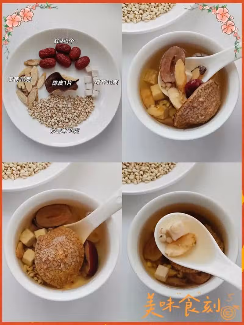 炒薏米30克、黃芪10克、茯苓10克、