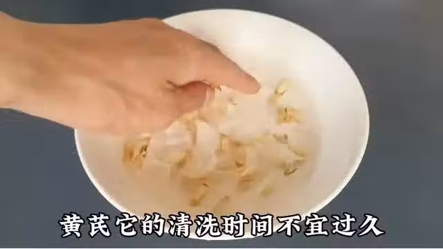 因為黃芪它的營養價值特別的高,它主要含有黃芪多糖皂苷類成分,以及黃酮類成分和胺基酸等等,平時很多朋友喜歡用黃芪來泡水,或者煲粥等等,淘洗30到40秒鐘左右即可,最後用漏勺將黃芪過濾出來。