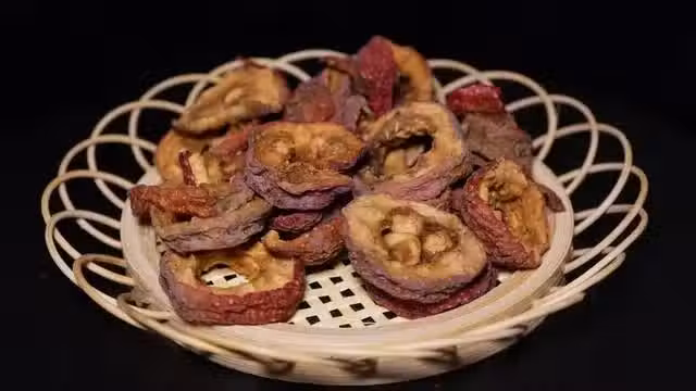 洗好之後把紅棗和山楂干撈出,紅棗個頭較大,我們可以用剪刀把它剪開,或者直接用牙籤在紅棗上面給它戳上一些小孔,這樣有利於紅棗當中的營養成分釋放出來!