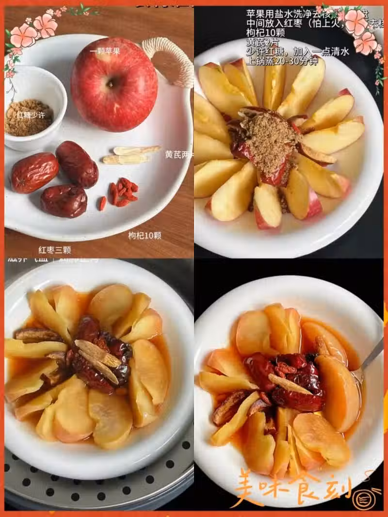 蘋果1個、紅棗3顆、枸杞10顆、黃芪2片、
