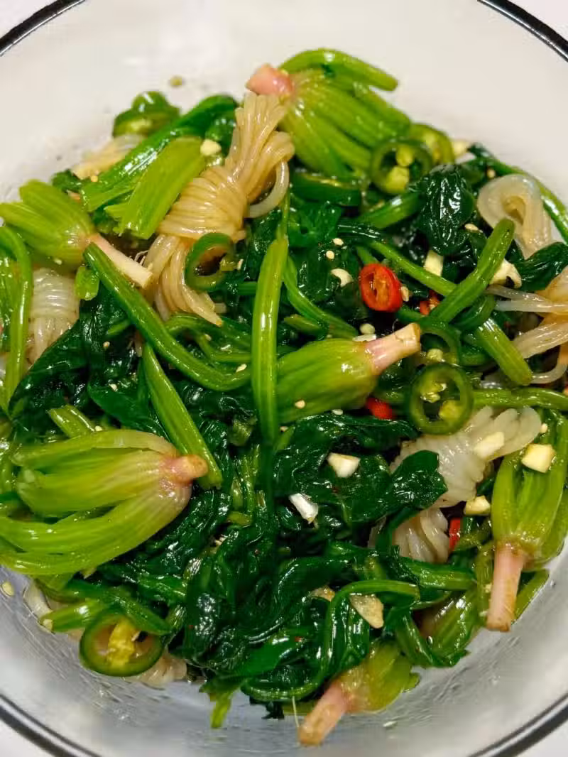 姐妹們,夏天就得這麼吃,既要清爽開胃,還能養身體。菠菜裡面含「菠菜甾醇」,是一種類黃體酮物質,同時還可以補鐵防貧血,讓面色更紅潤。放冰箱冷藏一下再吃,味道更棒哦。