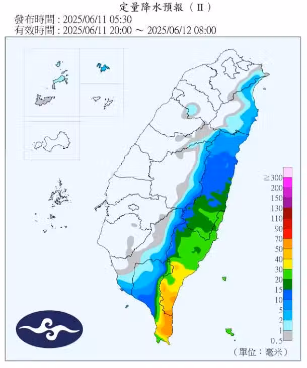 張承傳說,周四低壓帶北移,東部、東南部、南部有短暫陣雨或雷雨,並有局部大雨機率,東北部、中部地區有局部降雨,其他地區午後有局部短暫雷陣雨,中部、其他山區午後有局部大雨機率。 ▲▼今雨區預報圖。