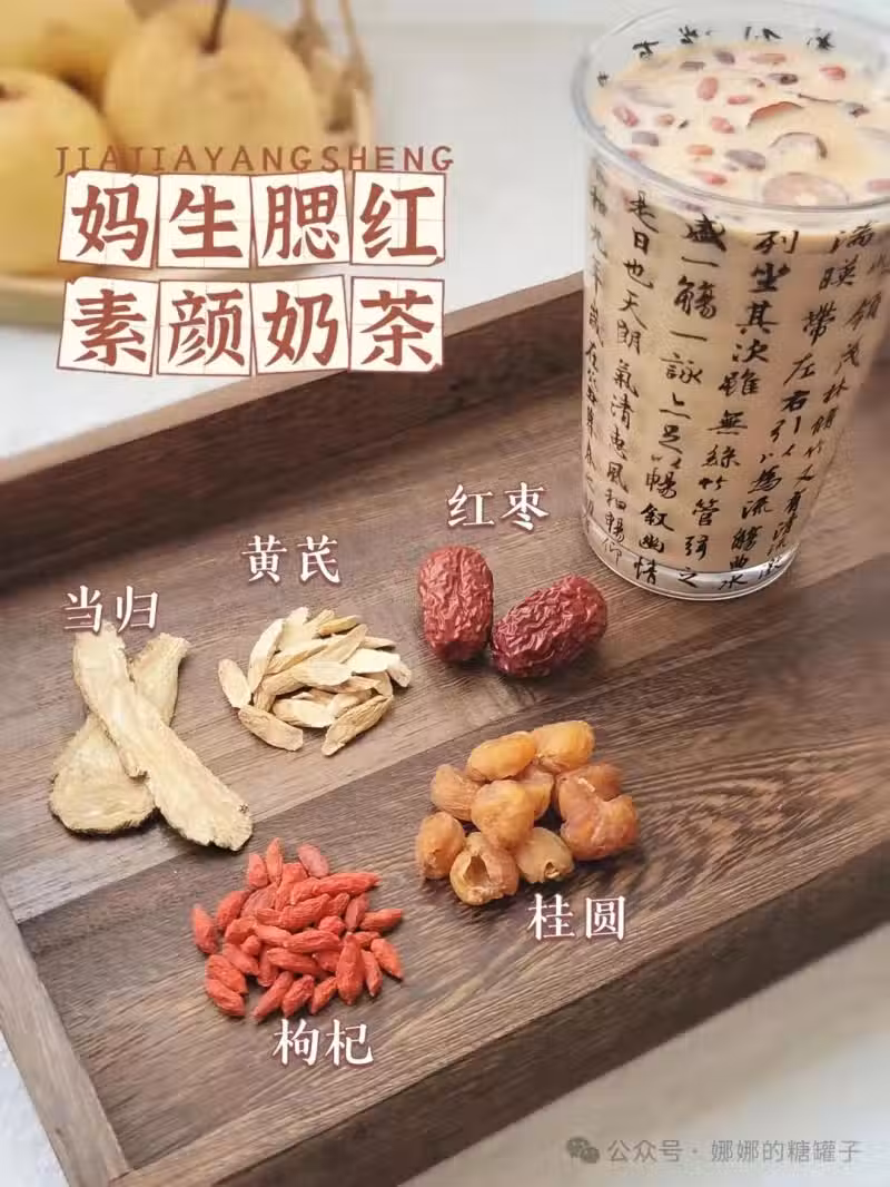 食材:當歸、黃芪、紅棗、枸杞、桂圓、牛奶。