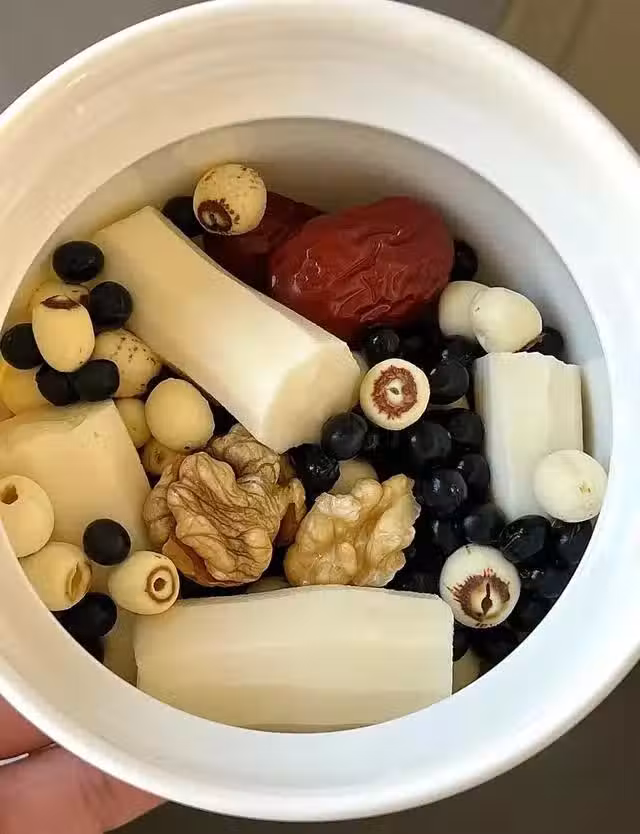 這道融合了蓮子、山藥、紅棗、核桃、黑豆和排骨的湯品,是一道營養豐富的滋補藥膳,兼具美味與養生功效,尤其適合秋冬季節或體質虛弱者調養。以下從食材搭配、功效解析和食用建議三個方面為您詳細說明: