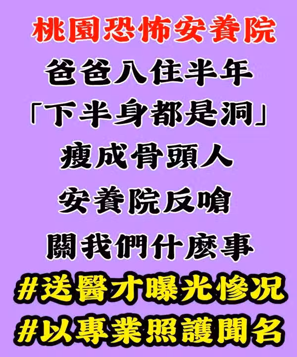 桃園恐怖安養院!爸爸入住半年「下半身都是洞」瘦成骨頭人 家屬自責「親手推入火坑」安養院反嗆:關我們什麼事