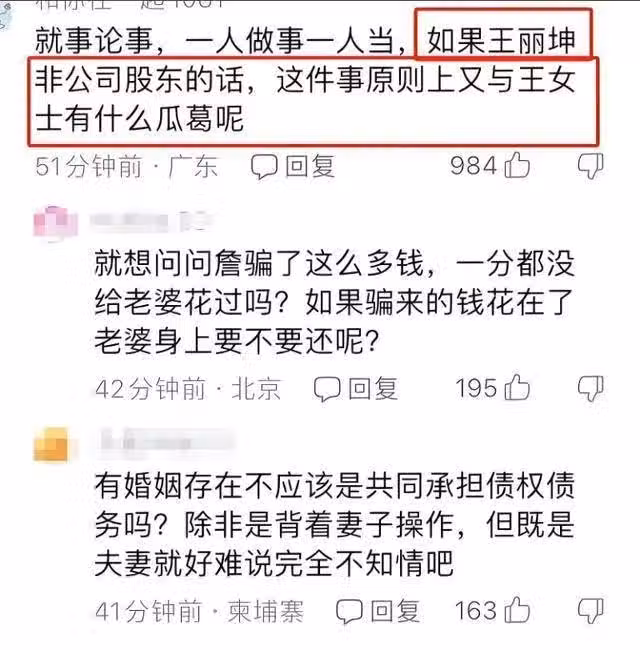 王麗坤也因此陷入輿論漩渦,被質疑是否參與詐騙或知情不報。