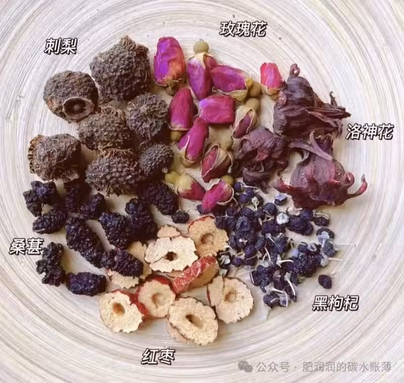 3️⃣💕抗氧化小能手:刺梨5個、洛神花2顆、玫瑰5朵、黑枸杞3g,桑葚4g 、紅棗2顆