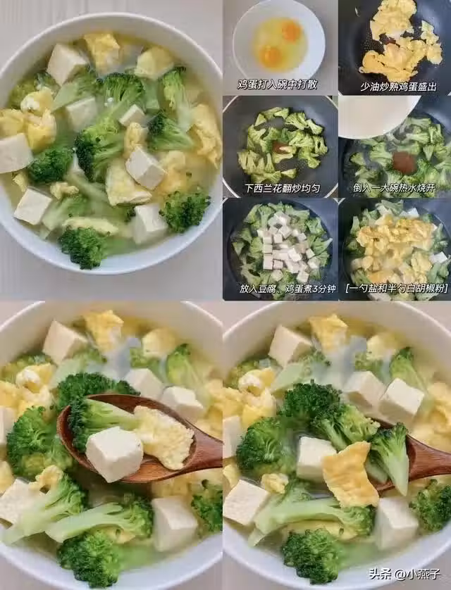 食材:西蘭花1朵+嫩豆腐1塊+雞蛋2個。