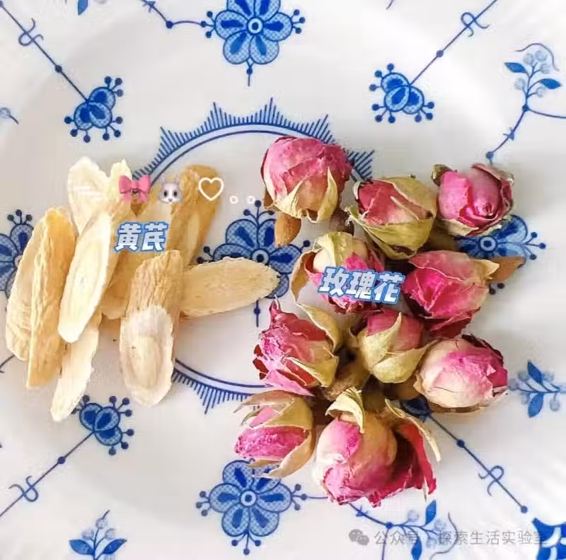 黃芪10g、干玫瑰花5朵、冰糖適量