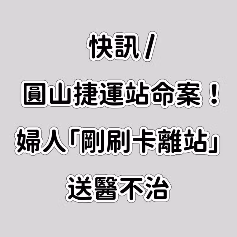 台北捷運圓山站今日下午發生令人震驚的意外事件,一名婦人在離站過程中突然失去生命,讓所有目擊者感到不舍與哀傷。